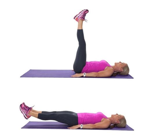 - نرفع أرجلنا إلى العمودي مع الأرض ، ونحتفظ بهذا الوضع لبضع ثوان وتبدأ ببطء ، ونشعر بعضلات البطن ، وخفض أرجلنا.